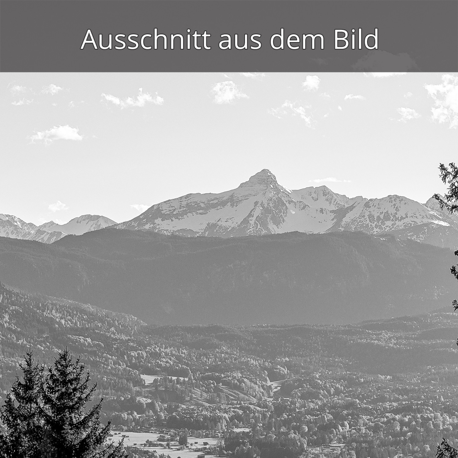 Bergwald - Almwiese über Garmisch-Partenkirchen mit Blick auf die Garmisch-Partenkirchener Berge. Wettersteingebirge mit Alpspitze und Zugspitze - rechts die Kramerspitz.