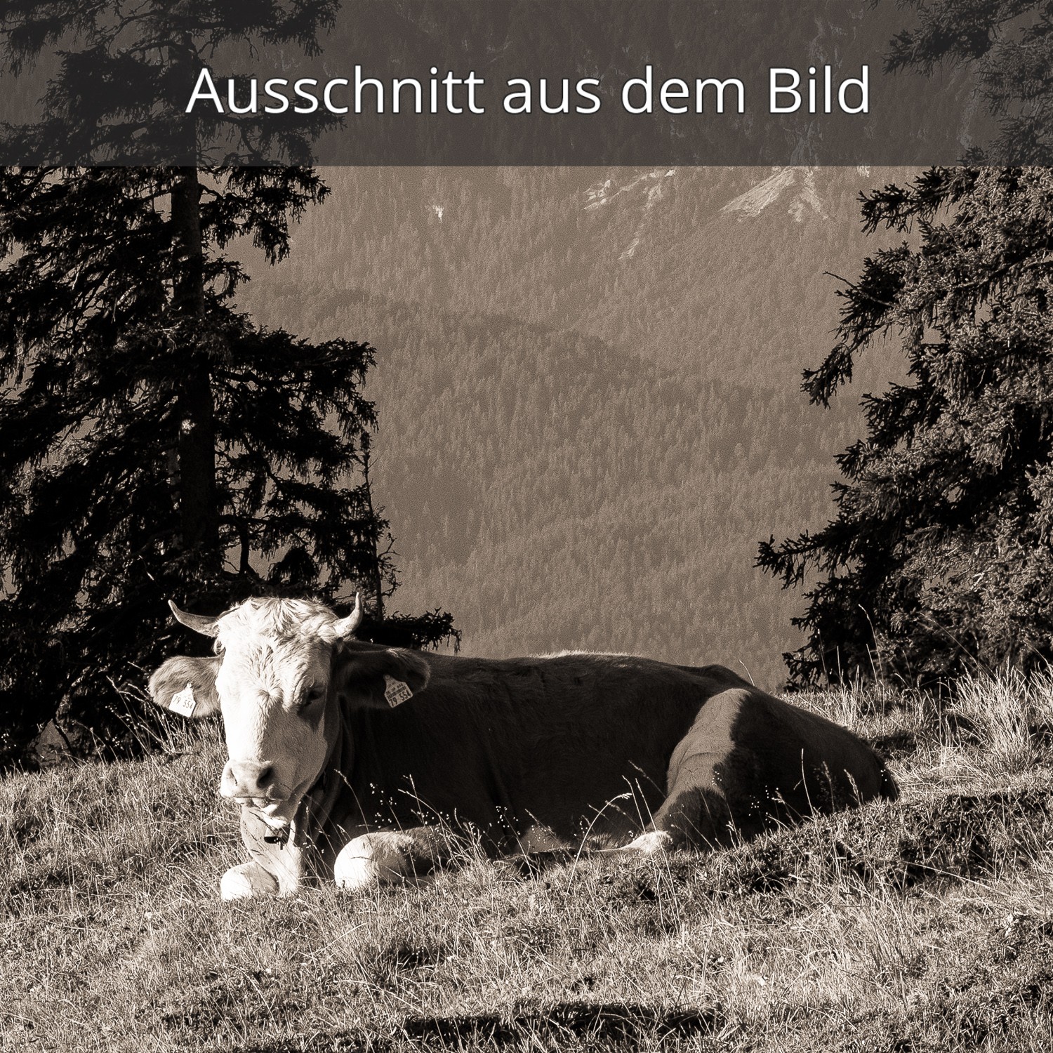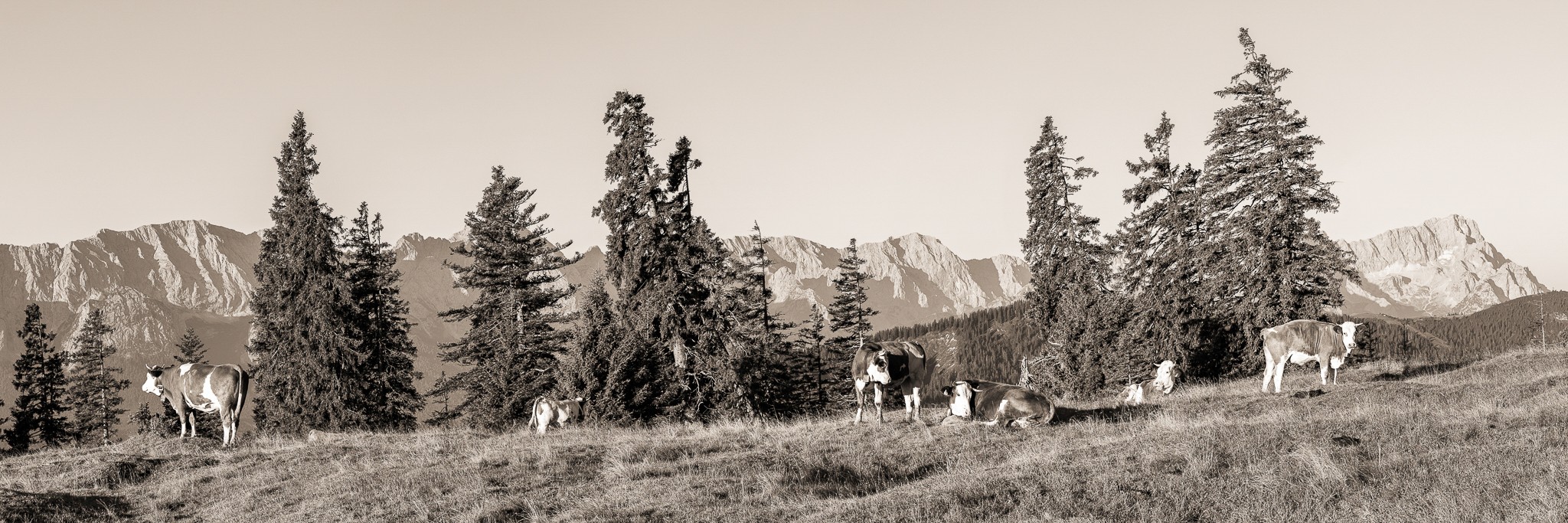 • Almwiese mit Zugspitze sepia Kälber