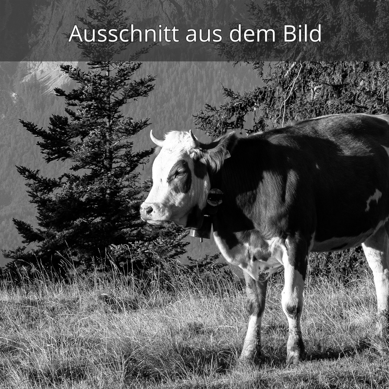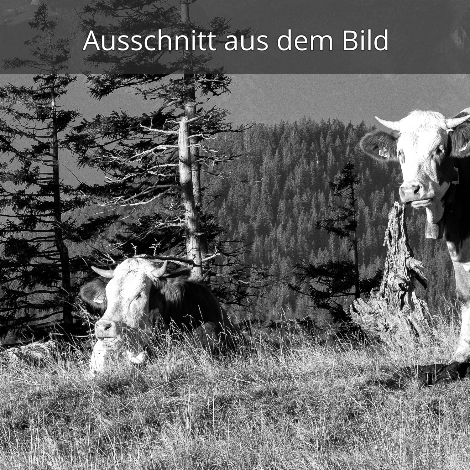 Panoramawiese auf der Alm schwarz-weiß mit Kälbern