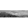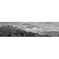 Links der Teufelsgrat mit dem Hochwanner, mittig das Zugspitzplatt mit der Zugspitze, rechts markant der Hochblassen und die Alpspitze. sw
